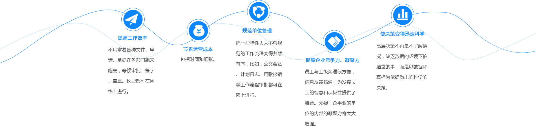 無論是企業(yè)還是政府機關(guān),都會有大量的文案需要處理,復(fù)雜的工作流程需要安排,決策者需要依據(jù)紛亂的信息作出重要的決定。擁有一套智能化、信息化的辦公系統(tǒng),對辦公人員和企業(yè)決策者來說,工作效率上的提高是顯而易見的。在網(wǎng)絡(luò)連接千萬家的時代,辦公自動化還使得不同地理位置之間的不同單位或部門之間進(jìn)行協(xié)同辦公成為可能。今天的中國,“企業(yè)信息化”、“政府部門信息化”都忙得如火如荼,一套優(yōu)秀的辦公自動化(OA)系統(tǒng)將是企事業(yè)單位邁進(jìn)數(shù)碼時代的“基石”。